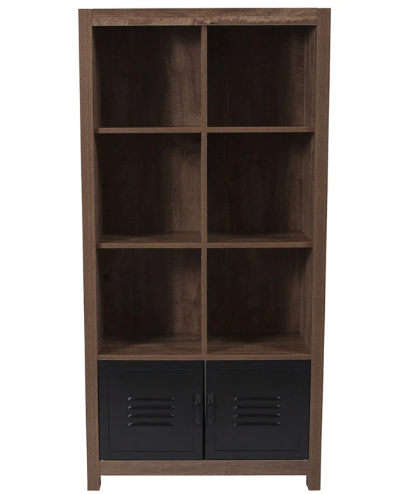 DescriptionThe Monroe Retail Display Unit w/ Storage offers a contemporary design and is the perfect size to display your retail products while also providing extra storage space for product overflow. This Retail Display Unit features an oak woodgrain laminate finish, 6 open spacious storage compartments, and 2 enclosed storage compartments that offer great extra storage. The Monroe Retail Display Unit also features black metal locker style doors, fixed compartment shelves, a black powder coated frame finish, and plastic floor glides to protect the display unit and floor. The Monroe Retail Display Unit w/ Storage is the perfect combination of style and functionality, with a bold style that is eye-catching for clientele.