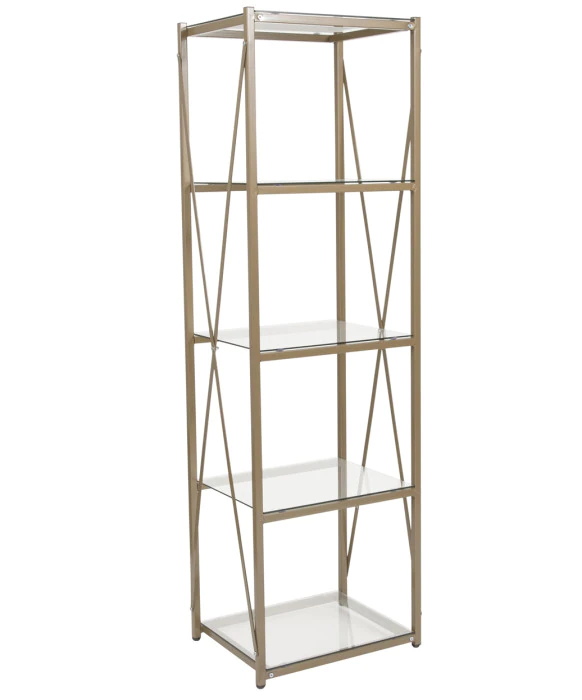 DescriptionThe Newbury Salon Retail Display Unit is a stunning addition to any salon or spa reception area that wants to increase their retail sales. With its streamlined, modern style and matte gold frame, the Newbury Retail Display provides a minimalist yet eye-catching style sure to attract clients in order to help increase retail sales. The Newbury Retail Display features four shelves with clear tempered 8mm glass, a stylish matte gold cross frame, and Adjustable Floor Glides to protect the display and the floor. The Newbury Salon Retail Display Unit is an ideal size to highlight your retail products while also bringing a touch of modern style to your reception area.