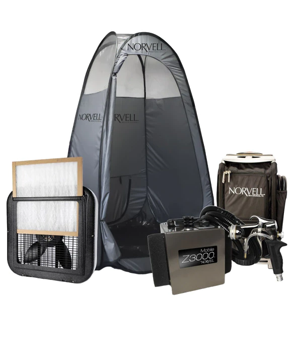 DescriptionThe Norvell Mobile Z-3000 offers award winning stability, design and craftsmanship thrust into a mobile HVLP spray unit. The Mobile Z-3000 is lightweight enough for use out on the road yet durable enough for back-to-back spraying in your store, all day long. The Norvell Mobile Arena is also designed for upgrades such as different guns and/or the Norvell Quiet Box. The Norvell Z-3000 features a small, lightweight design, newest HVLP Turbine technology, variable speed controls, lightweight mobile gun design and quick release hose connections. This HVLP sunless tanning unit includes pressurized HVLP Z-Gun for easy control and flawless spray and is also compatible with M-Gun and T-Gun.