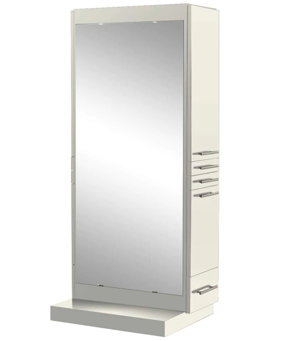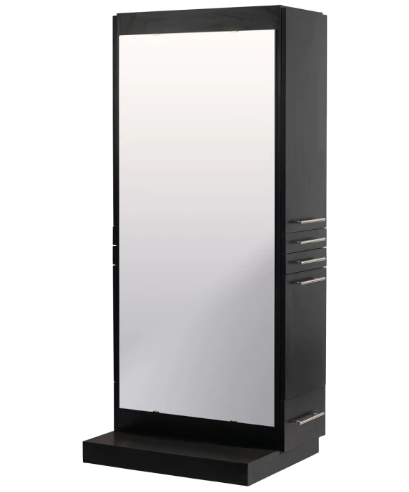 DescriptionThe Omni Styling Station w/ Mobile Base is inspired by our legendary Maxim Styling Station but also includes a lower base with hidden wheels for complete mobility. This free-standing styling station features clean, modern lines and ships to you in two fully assembled pieces complete with a 60" full-length mirror. A stylist working on the Omni Styling Station will be greeted on the right-hand side by an upper storage cabinet, two utility drawers, a slide-out tool panel to accommodate one blow dryer and two curling irons, and a bottom storage drawer! The left side of the station offers even more storage space with two large cabinets. Additionally, the Omni also features hidden wheels on the bottom for easy cleaning and maneuverability throughout your salon or spa. This feature would be a great asset to any cosmetology school looking to quickly transform their space from classroom to hands-on work-space. The Omni Styling Station is available in your choice of 40 laminate colors that are sure to match your specific salon decor! And if you have the need for (2) stylists to operate at (1) station we offer the Omni Double Styling Station w/ Mobile Base.