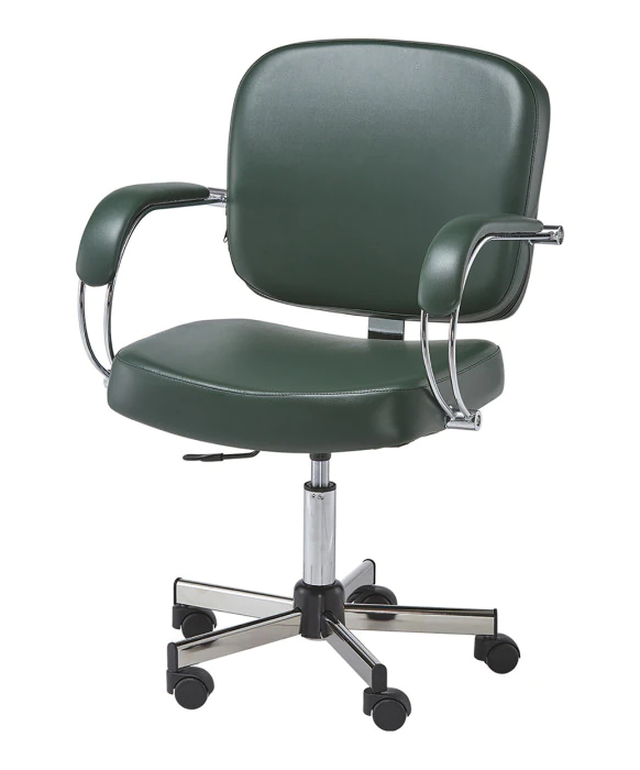 DescriptionThe Pibbs 3992 Latina Desk Chair is a perfect seating solution for the receptionist at any salon or spa. This salon reception chair features durable chrome arms, upholstered armrests and it is elegant and built to last. The Latina Desk Chair also features a sturdy 5 star chrome base with an adjustable lift to fit any reception desk. It is available in 40 vinyl colors so you will easily be able match and compliment the colors of your salon or spa! This reception chair is part of the Latina collection by Pibbs which includes a matching Latina Styling Chair, Latina Dryer Chair and Latina Backwash Unit. *Expedited shipping available please contact your Buy-Rite Sales Rep