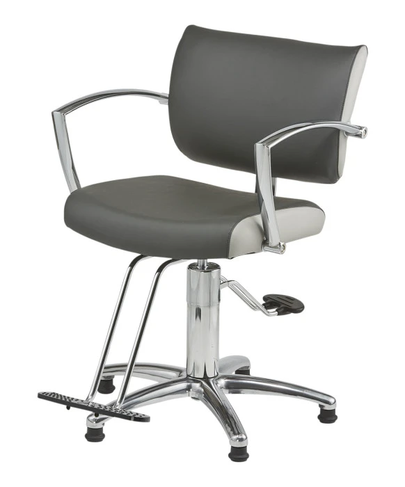 DescriptionThe Pibbs 5806 Rosa Hydraulic Styling Chair is Made in the U.S.A. by Pibbs Industries and is available in 40 different vinyl colors. Given that it is made in the U.S.A., this is an extremely high quality salon chair that is built to last many years and comes with a 2 year warranty on the Hydraulic Pump. This styling chair by Pibbs is made with sleek chrome arms that give the chair and your salon a modern look and feel. The Rosa's T-Bar footrest adds to its modern style by conveying a clean and simple appearance. This styling chair has an extra-wide seat with a gap in between the seat bottom and seat back that facilitates the cleaning process for the stylist, while also providing that extra space for your larger clients. While the Rosa Styling Chair is shown here with a Five-Star base, it is also available in a round or square base. If you are looking for a high-quality styling chair that is very stylish at an affordable price this is the chair for you!! For design continuity, we also carry the Rosa Dryer Chair, Rosa Desk Chair and the Rosa Backwash Unit!