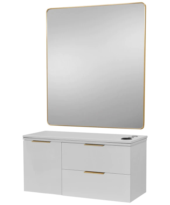 Q:What’s your return policy?A:If your purchase isn't quite right, don't worry! Just notify us within 30 days, get a return authorization number, send the product back in its original packaging and unused condition, and we'll refund you the original price you paid, minus a re-boxing fee upon receipt. Be careful, non-stock, made-to-order, or custom-made items can't be returned.Read more about our return policy at our Returns page to find out exactly what to do if your product isn’t the right fit.Read other answersQ:How does this item ship?A:Due to its size and weight, this item will be shipped using our Freight Delivery service. Freight Delivery is specifically designed for larger and heavier items that require extra care during transportation due to their fragility, size, and weight. These shipments are handled on larger trucks, where products are securely wrapped or strapped to wooden pallets to ensure safe transit. All Freight Deliveries are curbside deliveries which means that the delivery driver will unload the item from the truck and deliver it to the curb or the nearest accessible area outside your business or home. While they won't be able to assist with setting up the item indoors, this approach ensures a seamless delivery process tailored to your needs. Remember, orders over $5,000 ship for free! For more details on freight deliveries and curbside delivery, please refer to our Shipping & Delivery page.Read other answersQ:Can I finance this item over time instead of paying for it upfront?A:Absolutely! We have multiple financing programs available for our customers including Lease-to-Own and instant approval, no-credit needed SNAP financing for your salon equipment purchase. Head to our financing page to learn all about the different options and advantages to financing your equipment, or reach out to our product team for a step-by-step walk through of your all of your finance options.Read other answersQ:Do you offer bulk discounts for purchasing multiple of these items?A:We do offer bulk discounts for purchasing multiple items. Buying in larger quantities allows you to benefit from discounted and customized pricing, ultimately saving you money on your overall purchase. Our aim is to provide cost-effective solutions for your salon needs, and our bulk discounts are designed to do just that. Our dedicated product consultants are available to assist you in selecting the perfect equipment for your beauty or hair salon, as well as any other salon supplies you may require. Don't hesitate to reach out to our team today to begin creating your own customized equipment package and secure the best deal available!Read other answersQ:Do you have a showroom where I can see, touch, & test this product in real-life?A:Yes, we do! We have a showroom in Atlanta, GA where you can come to experience first-hand the quality of this item as well as many others! Learn more about our salon equipment showrooms at our Showrooms page. Interested in seeing our products in person before you buy them, but you don’t live close to one of our showroom locations? No problem! Our Fly N’ Buy program will help you get here by reimbursing your travel expenses! Ask your product consultant more about this incredibly valuable program offer.Read other answersQ:Can I purchase replacement parts for this item if needed in the future?A:Absolutely! We offer every part needed for all products that we offer. Our dedicated parts team specializes in finding your specific needed part, no matter how big, old, or small. Rest assured, whether it's a component needed two years from now or a decade down the line, we've got you covered. Learn more about our dedicated Parts Team that specializes in everything to do with salon, barber, and spa equipment parts & components.Read other answersQ:I love this product, but am overwhelmed with all of the options, and considerations to consider. Can someone help me?A:Absolutely! Our dedicated product team is here to assist you every step of the way. With over a combined 135 years of experience in the salon and barber equipment industry, they know each and every single item inside out. They can guide you through all the options and considerations, from layout to trending styles, and even provide the best tips for cleaning and maintenance. Just reach out to us, and we'll ensure you make the right choice for your needs.Read other answersQ:What’s the warranty on this item?A:This product is covered by a comprehensive minimum 2-year warranty, our cabinetry includes full protection for all components, including laminates, full-extension drawer slides, and hinges. Made from materials resistant to scratches, stains, and moisture, our cabinetry retains its appearance and integrity over time. Should any issues arise within this period, we will repair or replace the defective parts at no additional cost to you. For detailed information about what is covered under this warranty and how to make a claim, please refer to the warranty section or visit our Warranty page.Read other answersQ:How is this product installed & assembled?A:This station, consisting of only three fully assembled pieces—the mirror, wall cabinet, and stone countertop—allows for straightforward setup. Before mounting, consider locating and marking the wall studs for secure installation. Plan the height for optimal client comfort and accessibility, and ensure the workstation is securely leveled and mounted. We understand the frustration of receiving products that require extensive assembly. That's why we prioritize simplicity, ensuring easy installation and setup so you can focus on running your business smoothly and efficiently.Read other answersQ:How do I clean this product?A:Regular upkeep for this cabinet involves simply wiping the surface with a damp sponge or cloth using mild soap or detergent, followed by thorough rinsing and drying. For tougher stains like coffee or tea, a gentle scrub with a soft-bristled brush and mild househ
