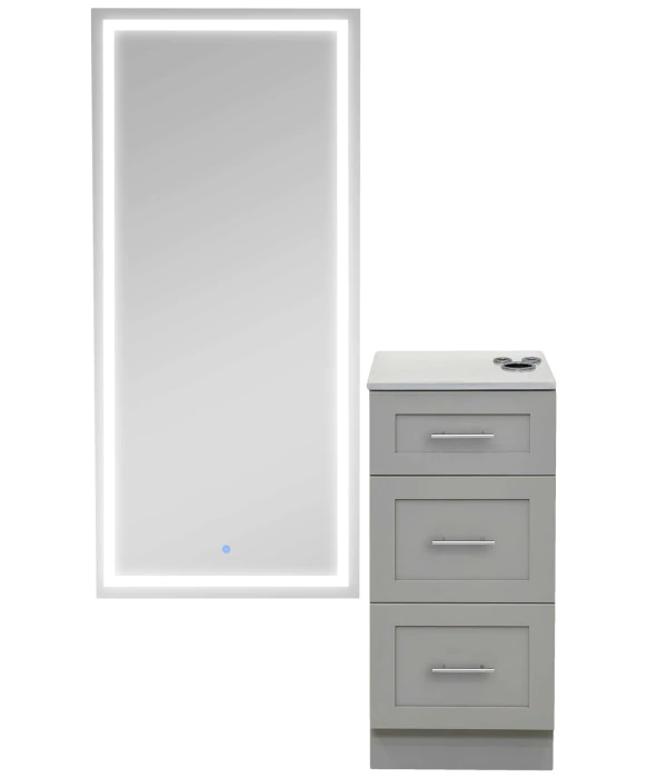 DescriptionThe Pibbs 6050 Shaker Styling Station & Mirror combines a compact design with functionality to enhance efficiency in any salon, spa, or barbershop. Offering ample design flexibility, the styling station comes in (4) wood color options, (3) handle color options, and (4) stone top color options for complete customization. This styling station features three pull-out storage drawers and appliance holders built into the top to accommodate a blow dryer and two curling irons. Due to its space-saving design, this freestanding station can be placed anywhere in your space for added versatility. This styling station package also includes a salon mirror offering over 25 options to complete your setup. Choose from rectangular, arched, and rounded mirror options with multiple frame color options also available. Additionally, choose one of the LED upgraded mirror options to add perfect ambient lighting to your space. If you are looking for this styling station without a mirror, check out the Pibbs 6050 Shaker Styling Station.