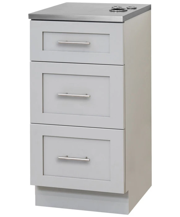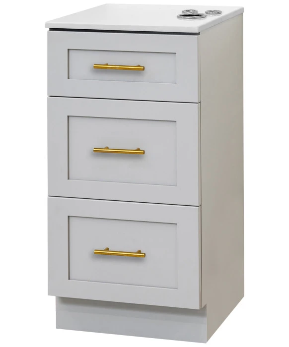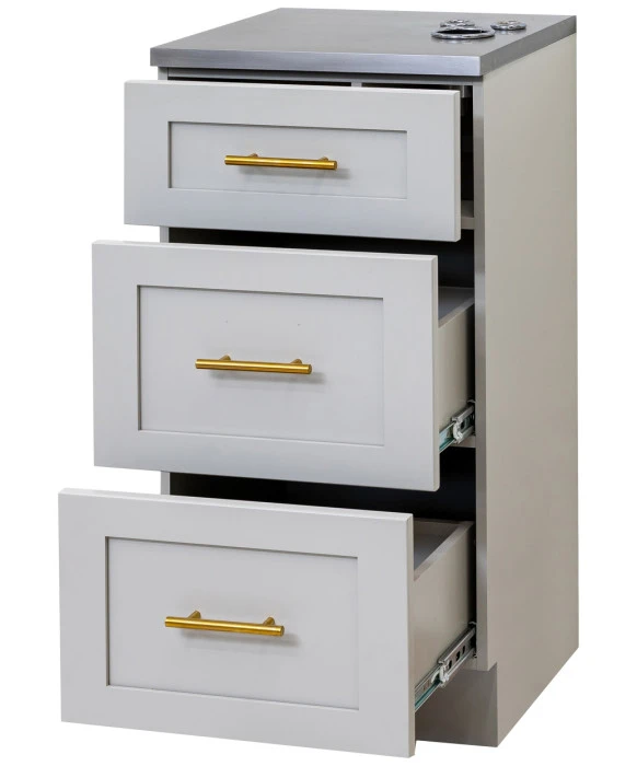 DescriptionThe Pibbs 6050 Shaker Styling Station combines a compact design with functionality to enhance efficiency in any salon, spa, or barbershop. Offering ample design flexibility, this station comes in (4) wood color options, (3) handle color options, and (4) stone top color options for complete customization. The styling station features three pull-out storage drawers and appliance holders built into the top for a blow dryer and two curling irons. Due to its space-saving design, this freestanding station can be placed anywhere in your space for added versatility. If you are looking for this styling station along with a salon mirror to complete the set-up, check out the Pibbs 6050 Shaker Styling Station & Mirror.