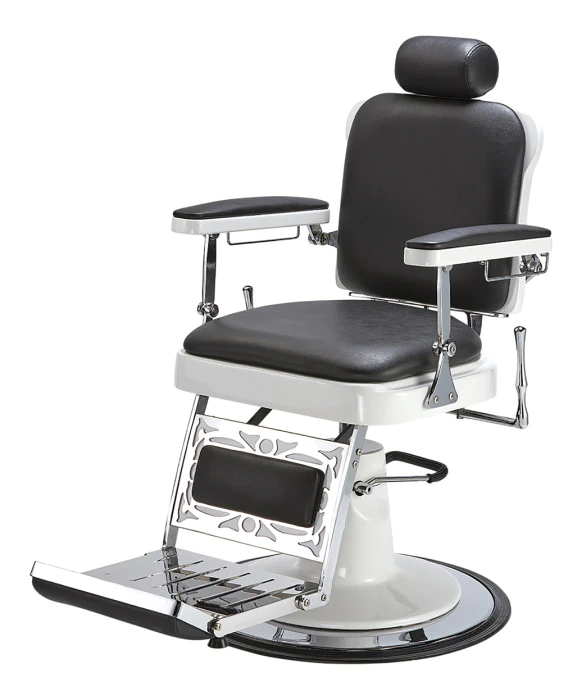 DescriptionThe Master Barber Chair is expertly crafted by Pibbs, one of the most trusted and top quality manufacturers in the salon equipment industry. The Pibbs 663 Master Barber Chair is sure to bring a touch of vintage style to any Barber Shop or Salon, and features a traditional flip-style footrest and padded calf rest with a unique filigree design. A fresh white fiberglass trim around the chair’s stainless steel frame offers a clean look, and the double-padded seat, back arm rests and calf rest offer your guests maximum comfort. The Master Barber Chair comes on a heavy-duty hydraulic pump base and features a full reclining mechanism with handles on both sides for your convenience. This professional barber chair also comes in your choice of 40 vibrant vinyl colors, so call your Buy-Rite Sales Representative to order yours now! *Expedited shipping available, please contact your Buy-Rite Sales Consultant for assistance.