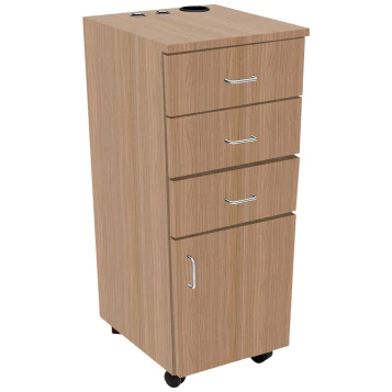 DescriptionPibbs D38 Portable Styling Station can be used as either a storage utility cart or a portable styling station. This portable station is made of wood and has wheels making it very easy to move around the salon. It has a locking door that allows you to store all items overnight without worry. It comes with 4 storage trays and two chrome appliance holders that can hold appliances even while they are hot! It also has a blow dryer holder and a large workspace on top. Perfect size to help save space in any salon!!