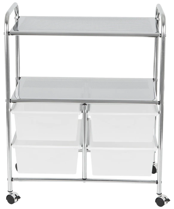 - Heavy-Duty Metal Framed Cart Available with Black or White Drawers