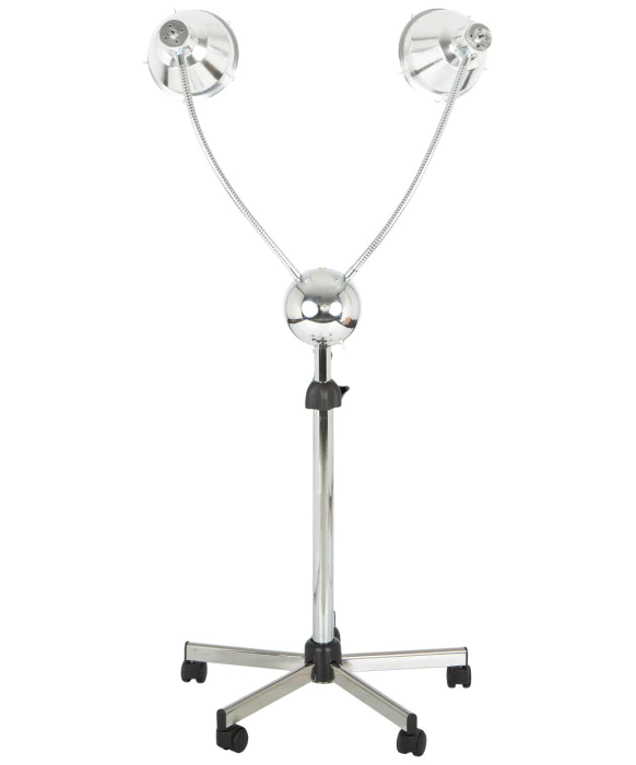 DescriptionThe Pibbs DL 957 2 Headed Processing Lamp is Made in the U.S.A. and is perfect for processing highlights and base color. This processing lamp offers a total of 500 watts (250/ Bulb) and each light is controlled individually. The DL957 professional hair processing lamp sits atop a five star base on industrial strength casters for stability and ease of mobility. Designed with functionality in mind, this Hair Processor comes with an adjustable stand and pliable arms to meet all your client's needs. (Bulbs Included)
