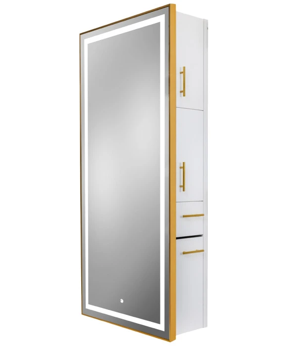 Pibbs 9220 Lumina Gold Frame LED Salon Mirror & Storage Server