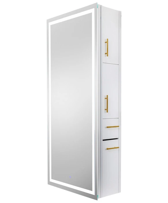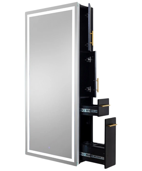 Pibbs 9110 Lumina Gold Handle LED Salon Mirror & Storage Server