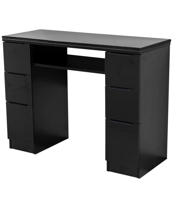DescriptionThe Pibbs PB1045 Martino Manicure Table is a stylish and professional manicure table that will add contemporary elegance to any salon or spa. Choose from 4 rich wood finish options, as well as 3 stone top colors and 3 handle colors to create the look that is just right for you! This modern nail table features a durable stone top, 6 spacious drawers for technician supplies, as well as an additional shelf storage space beneath the stone top to allow for quick access to frequently used tools. The smart design of this professional nail table allows for maximum storage, practical functionality, and a clutter-free environment without compromising any aesthetics. On the Martino Manicure Table each drawer is outfitted with full extension glides and luxurious brushed metal handles that are sure to impress. The Pibbs Martino Manicure Table will give your salon or spa that modern professional edge, and your customers are sure to love it too!