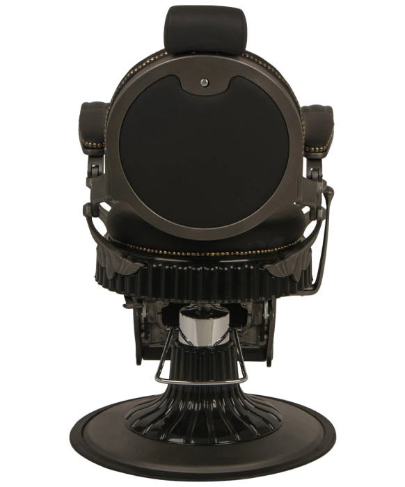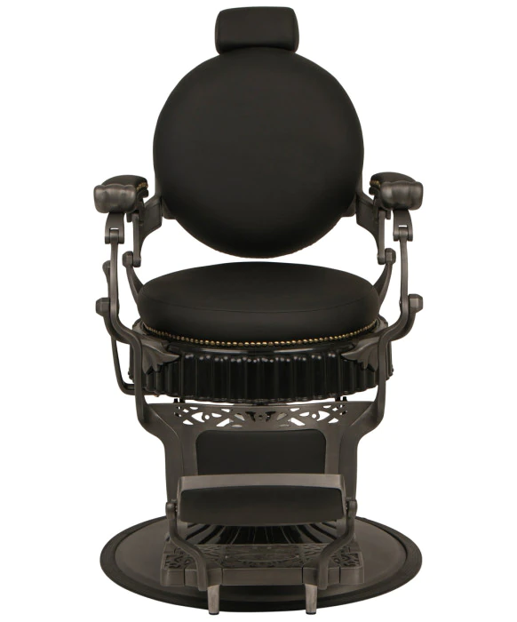 DescriptionThe Regal Professional Barber Chair exudes elegance and sophistication with its vintage-inspired look, and the antique design will add a timeless feel to any barber shop or salon. This professional barber chair features a solid steel frame with a brushed-metal finish and an antique-style hydraulic base that comes with a two-year warranty on the hydraulic pump. The Regal Barber Chair also features comfortable seat and back cushions that are finished with premium black vinyl and adorned with brass nail head trim detailing for the perfect nostalgic design. This barber chair is finished with padded armrests and a stylish flip-style footrest for added client comfort. Let your customers enjoy a trip down memory lane with this vintage-style barber chair that is outfitted with all the modern features to assure a relaxing experience for your clients.