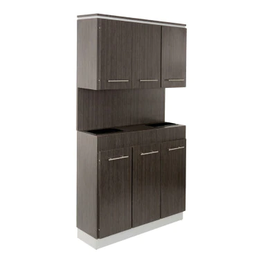 A shampoo backbar is a storage cabinet designed specifically for the shampoo area of a salon, spa, or barbershop. It keeps towels, shampoos, conditioners, and cleaning supplies organized and within arm’s reach, helping stylists work more efficiently while maintaining a clean, professional-looking shampoo space.