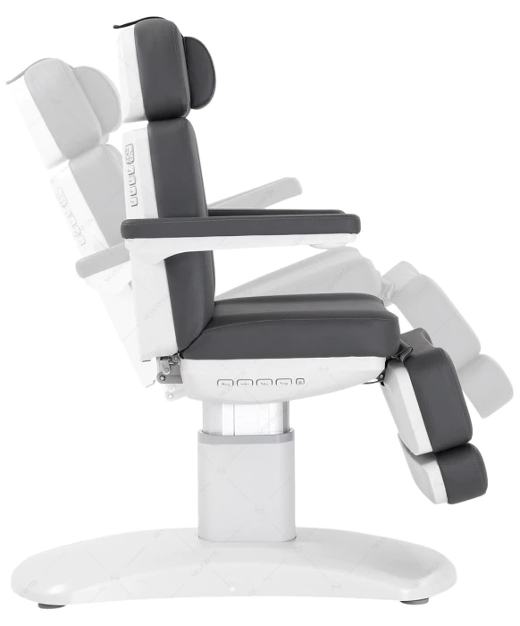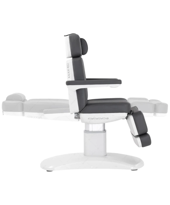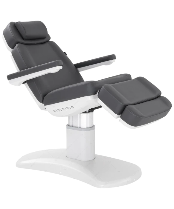 DescriptionThe Silver Fox 2222BN Facial Bed and Medical Chair is a sleek, multipurpose chair perfectly suited for a wide range of spa and medical treatments, including facials, massages, injections, medical exams and more! The 2222BN is highly adjustable, featuring convenient rocker switches on the back and seat side for easy position adjustments, while lock, reset, and memory functions offer effortless control and customization. Thoughtfully designed, the durable base is tapered and compact, enabling you to stand closer to the client for more precise treatments and services. The premium vinyl upholstery is available in dark grey and is extremely durable and easy to clean. This multi-purpose bed is equipped with four motors that control the height, backrest, footrest and inclination of the entire bed and all 4 motors are controlled by the included hand remote. The bed has a single column lifting base that moves up and down directly, so that it can be used in the smallest of spaces.