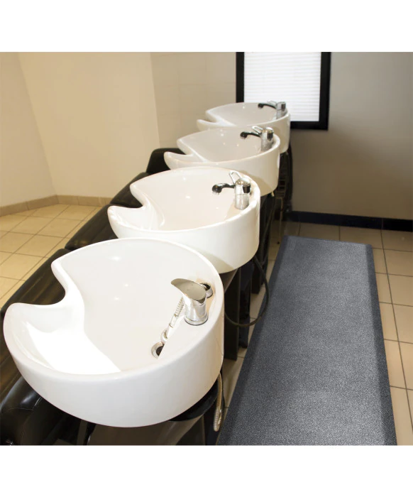 DescriptionThe Anti-Fatigue Runner Mat by Smart Step is great for any salon, barbershop, spa or office that is looking for an extended mat that offers a uniformed look. This runner mat offers the same great benefits as all other Smart Step Mats with the added benefit that it is one continuous piece and 6 Ft. long. This mat is great for use behind the Front Counter, Shampoo Area, Spa Rooms, Esthetician Areas, and Everywhere in between. The Smart Step Runner Mat is available in multiple colors and finished to create a clean, attractive, and uniform look throughout any space. This runner mat is made with beveled edges that will never curl, and it is also stain & color resistant providing unmatched longevity. Made 100% in the USA, the ¾” thick one-piece polyurethane construction comes with a 5-year performance warranty. The Runner Mat by Salon Smart offers a continuous and clean approach and is sure to provide many years of extreme comfort to any stylist or barber!