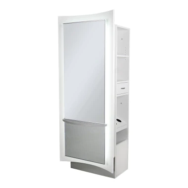| Salon stations come in various types, each designed to suit different salon layouts, workflows, and service needs. Here's an overview of the main types of salon stations and their ideal applications: Single-Sided Stations Single-sided stations are designed for one stylist and are meant to be positioned against a wall, available in both freestanding or wall-mounted designs. These stations are ideal for salons with a linear layout or limited space, making them perfect for compact salons or private suites where each station can be neatly arranged along a wall. Double-Sided Stations Double-sided stations feature two workspaces back-to-back, allowing two stylists to work simultaneously on opposite sides. These stations are ideal for open-floor layouts or larger salons, maximizing floor space and increasing client capacity without crowding the area, making them perfect for busy, high-traffic salons where efficiency is key. Salon Mirrors Salon mirrors can be integrated into stations or used as standalone elements for styling and client consultations. They are versatile and can complement any station setup, with large mirrors enhancing the perception of space, making them a smart choice for smaller salons looking to create a more open feel. Rolling Stations Rolling stations are portable workstations on wheels that offer flexibility, allowing stylists to easily move their tools and equipment around the salon. These stations are ideal for salons with dynamic layouts or limited space, making them perfect for small or multifunctional areas where reconfiguration is often needed. They pair especially well with standalone salon mirrors that don’t have built-in cabinet storage, providing a versatile and adaptable setup. Barber Stations Barber stations are specialized workstations designed for barbering services, typically featuring built-in tool holders and larger storage areas. These stations are best suited for salons with a dedicated barbering section or standalone barbershops, offering tailored equipment for efficient service. Wet Stations Wet stations are multifunctional units equipped with built-in shampoo bowls, allowing stylists to perform wet services like shampooing and coloring all in one place. These stations are especially valuable in assisted living salons, as they minimize client movement and ensure that all services happen in a single space, reducing mobility challenges. They are also ideal for salon suites where space is limited and dedicated areas for different services aren’t feasible, making them essential for full-service setups that prioritize convenience and efficiency. |