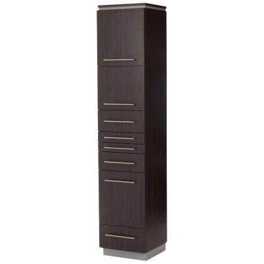 A tower salon styling station is a freestanding storage unit designed to work alongside or beneath a salon mirror, rather than replacing the mirror itself. These towers provide organized storage for tools, products, and supplies while keeping everything within arm’s reach of the stylist. They are commonly used to create a clean, streamlined workstation without the bulk of a full station cabinet.