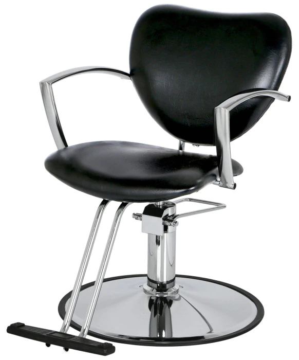 DescriptionThe Sylvia Styling Chair is our take on a European designed hydraulic styling chair, featuring sleek metal arms and a T-footrest. This styling chair is built on a heavy-duty chrome steel frame on a chrome stainless round base. The Sylvia Salon Chair features an extra-wide seat with 360 degree swivel rotation to make styling a breeze. Bring a stylish modern look to any salon with this eye-catching chair. We also have a matching Dryer Chair for great design continuity throughout your salon.