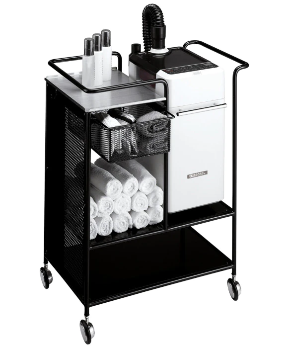 DescriptionEnhanced mobility and storage is now easier with the Spa Mist II Wagon type. With mobile casters, ample storage, and a wagon-mounted Spa Mist II unit, you can keep your deep conditioning and service essentials organized and ready for treatments and services. Vibrant color, lasting curls and stronger wave length - the Spa Mist II by Takara Belmont enhances Head Spa salon treatments by generating a fine mist of microscopic water particles that provide deep conditioning penetration. Spa Mist II was developed with a focus on using the power of mist to provide unmatched conditioning results and client relaxation as it gently opens up the hair's cuticle layer for deep conditioning of the hair and scalp. With a simple to use, light and portable design, the Spa Mist II delivered clients a truly relaxing facial for their hair. An ultrasonic transducer, vibrating at 1.6 million times per second, generates the fine mist that delivers amazing results. The temperature and quantity of the mist can be freely controlled, enabling treatments to better permeate the hair and deepening the effect of relaxation. Step 1: Uniform Heating for a Consistent Finish - Mist fills the cap, infusing hair with moisture and uniform warmth, so treatment naturally permeates every strand. Step 2: Colling Sustains the Treatment - The cooling function locks the treatment particles into the hair. The mist heating and cooling functions combine to give longer-lasting results. Step 3: Relaxation - Open mist provides gentle heating for comfort and a soothing, luxurious experience.