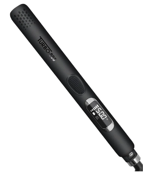 DescriptionExperience salon-level styling with the Turbo 500 Nano Black Titanium Flat Iron (1 inch), engineered for all hair types with advanced black titanium plates that deliver an ultra-smooth, anti-stick, anti-static glide in just one pass. Featuring fully digital temperature control ranging from 170°F to 500°F, this flat iron offers precise heat for any style, while floating plates adapt seamlessly to your hair for effortless straightening or curling. Built-in ceramic heaters ensure instant heat recovery for consistent performance, and dual voltage capability (110V–240V) makes it the perfect travel companion.