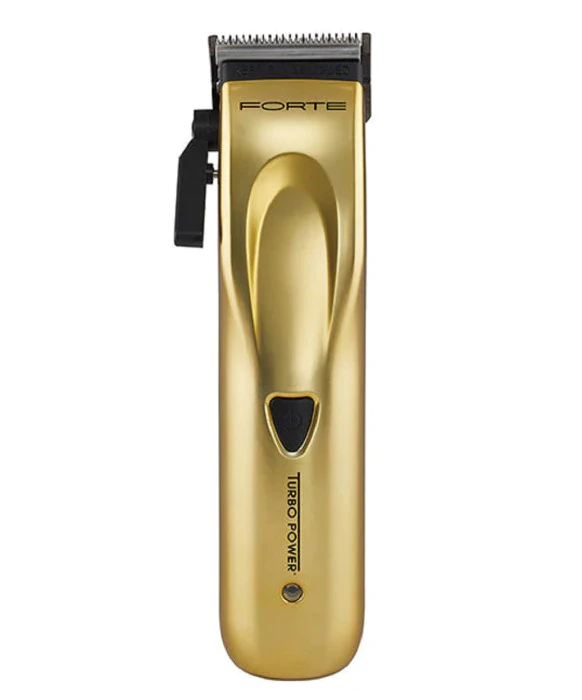 DescriptionExperience high-performance precision with the Turbo Forte Professional Hair Clipper, featuring a 10,000 RPM linear magnetic motor for ultra-smooth, quiet cutting power. Designed for professional-grade performance, it includes a Black Diamond Carbon DLC blade that stays sharp, cool, and corrosion-free, along with a click-lever taper for five adjustable settings and a zero-gap option for ultimate customization. With 120 minutes of cordless runtime, low noise and vibration, and five magnetic guards included, this clipper delivers comfort, control, and cutting-edge results whether used corded or cordless.