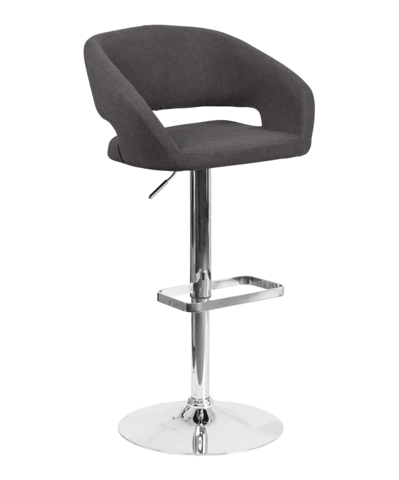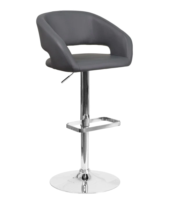 DescriptionThe Vanessa Contemporary Adjustable Stool by Flash Furniture features a sleek chrome base with a gas lift, which adjusts this stool from counter to bar height with ease! With its rounded mid-back design, this adjustable stool is designed to give a modern flair to any salon seating area, and includes a footrest and swivel seat. The Vanessa comes in your choice of 9 vinyl or fabric colors, so ask your Buy-Rite Sales Representative today!