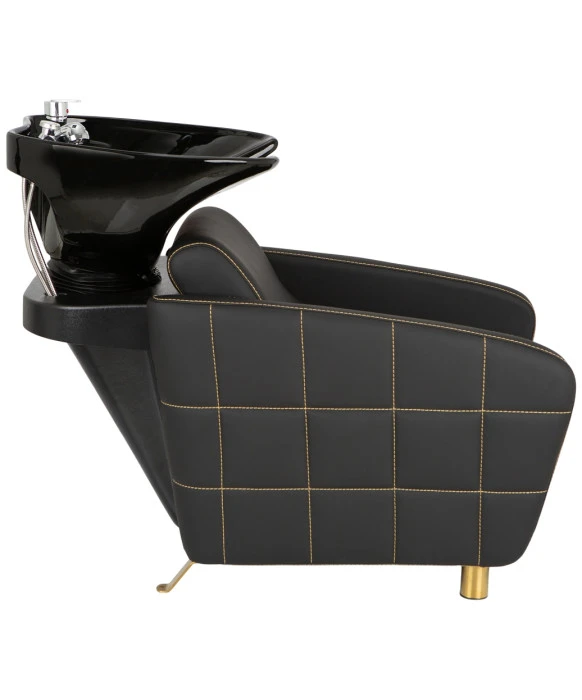 DescriptionThe Zara Backwash Unit is beautifully embroidered with a gold stitching accent that provides a quilted pattern on the outside of the arms and is the perfect match with the popular Zara Styling Chair. Designed with client comfort in mind, this backwash unit puts your client at the perfect angle for their head to lay comfortably in the bowl while providing extra lumbar support for their back. The Zara Backwash unit features a deep tilting porcelain shampoo bowl that is available in black or white and comes complete with a dual function nozzle, single handle fixture and a built-in vacuum breaker. This shampoo unit is extremely stylish and comfortable making it the perfect addition to any salon or spa. For design continuity, we also offer the matching Zara Styling Chair that is a perfect match when they are paired together.